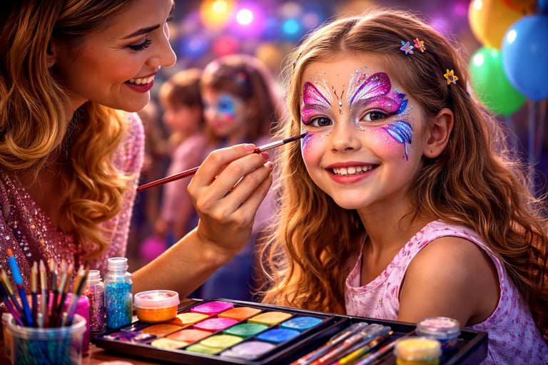 La estación Face Paint Party transforma el evento en un espacio lleno de fantasía y creatividad.