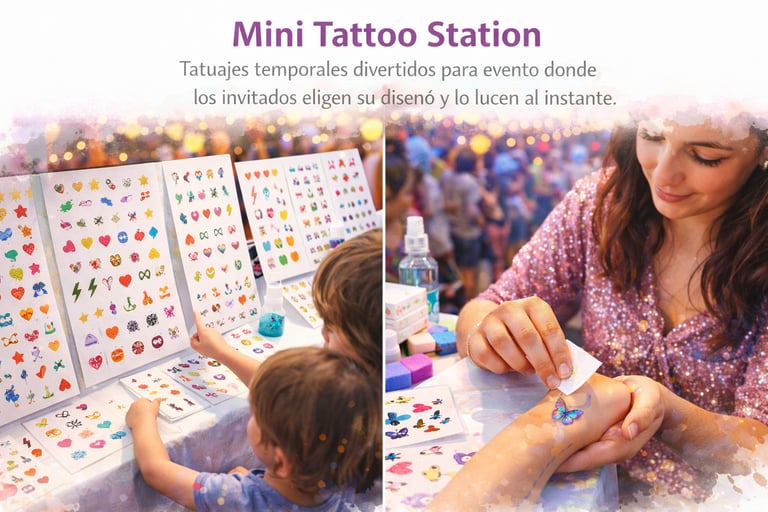 La Mini Tattoo Station ofrece tatuajes temporales divertidos y elegantes para invitados de todas las edades.